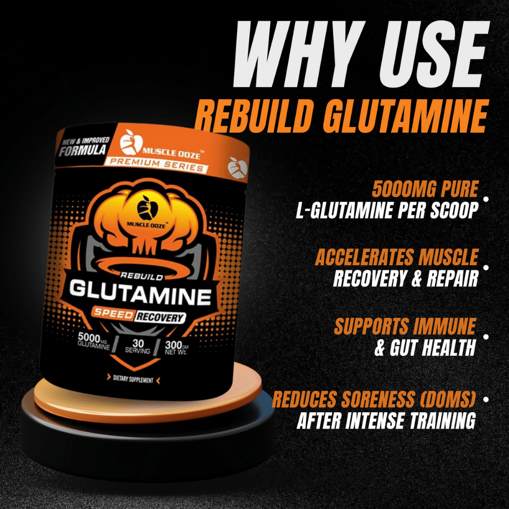 MuscleOoze Rebuild Glutamine is scientifically designed to replenish your body’s most abundant recovery amino — L-Glutamine — lost during intense training sessions.